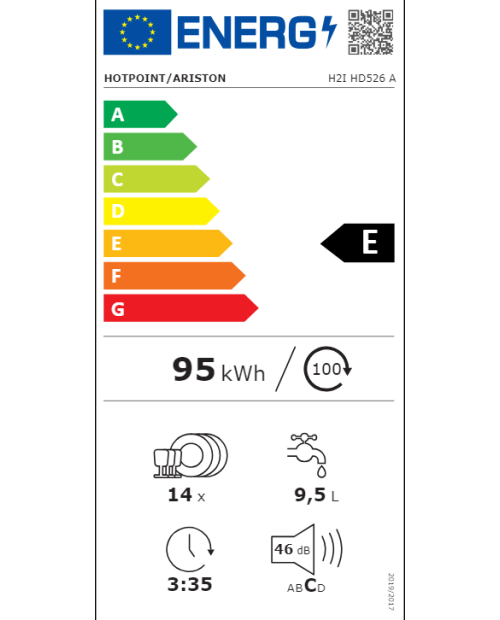 Consumo de energia por 100 ciclos Programa Eco (EU 2017/1369) : 95