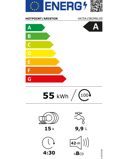 Consumo de energia por 100 ciclos no programa ECO (EU 2017/1369) : 55