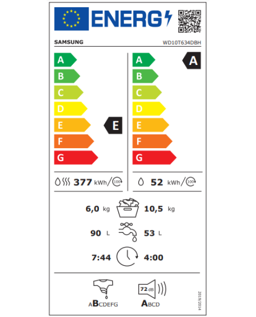 MÁQUINA DE LAVAR E SECAR ROUPA SAMSUNG - WD10T634DBH/S3