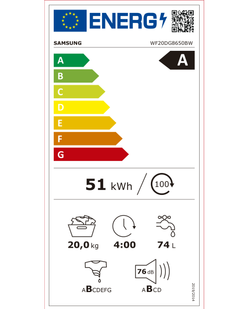 MÁQUINA DE LAVAR ROUPA SAMSUNG - WF20DG8650BWU3