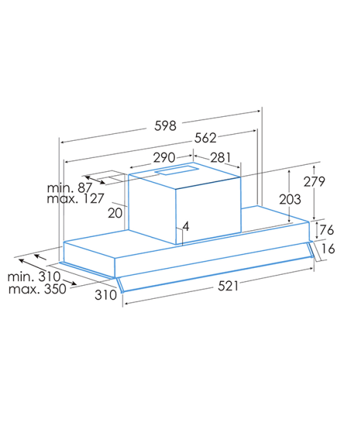 Dimensões (axlxp): 280x598x310-350mm