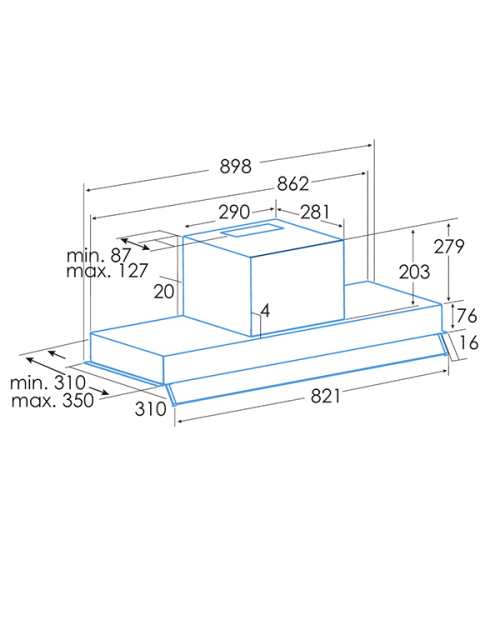 Potência de extração Máx / Mín: 645 / 385 m3/h