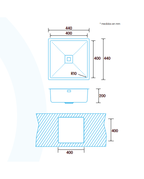 Dimensões (lxcxp): 440 x 440 x 200 mm