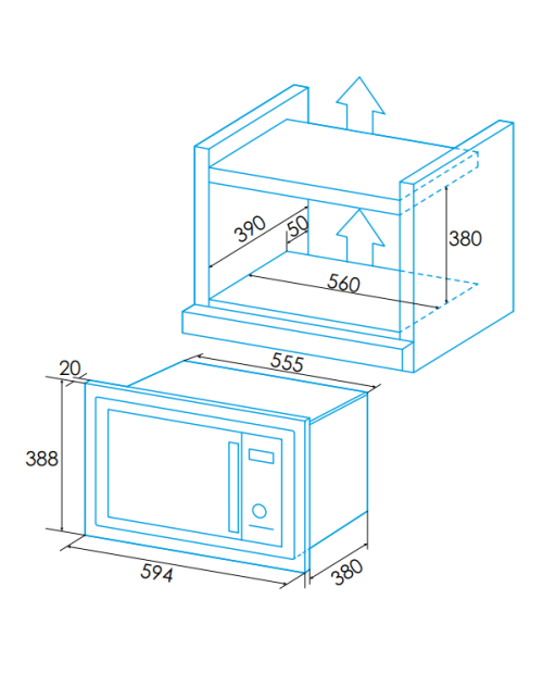Micro ondas de encastre de 25 litros, 900W e com grill 1200W