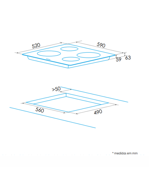 4 Focos: Um de 21,5 cm, outro de 18,5 cm e outros dois de 15 cm de diâmetro