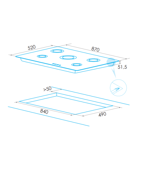 3 grelhas independentes de ferro fundido sobre superfície de vidro temperado