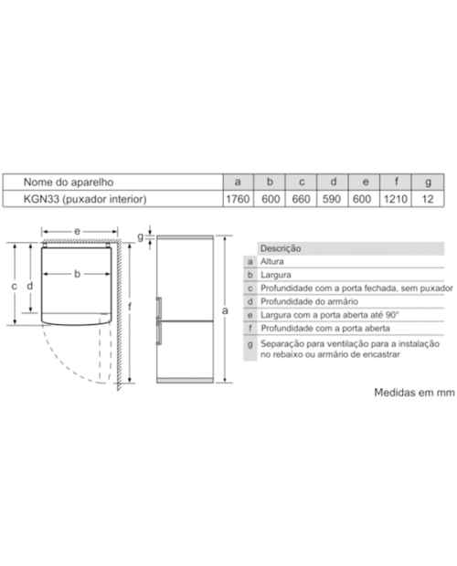 Aparelho (A x L x P sem puxador): 176 x 60 x 66 cm