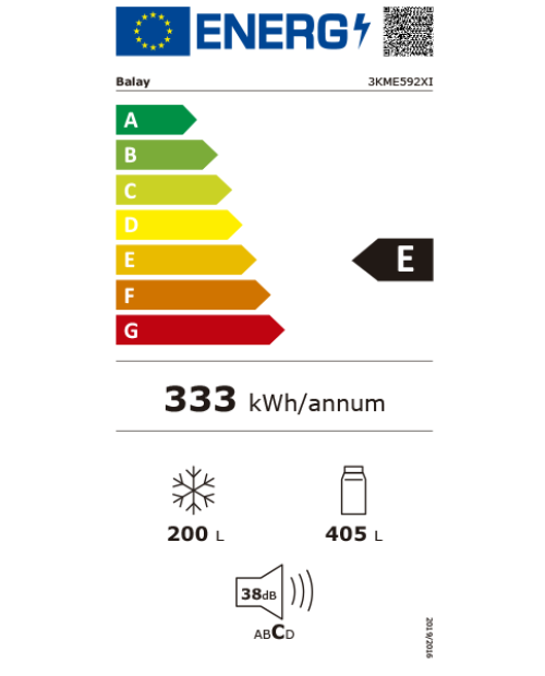 Consumo médio anual de energia em kilowatt-hora por ano (kWh/a): 333 kWh/annum