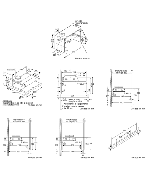 Capacidade de extração máxima em modo de recirculação de ar: 196 m3/h