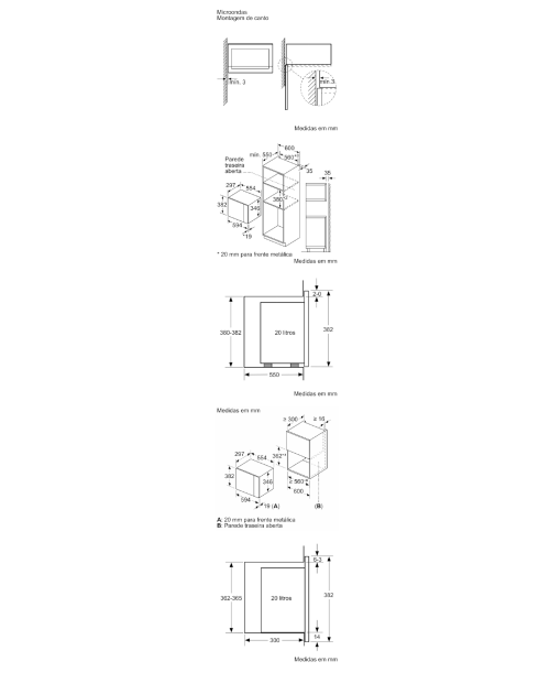 Instalação em armário superior de 60 cm de largura (mínimo 30 cm profundidade), coluna de 60cm de largura