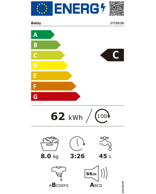 Classe de eficiência de secagem por centrifugação do programa eco 40-60: B