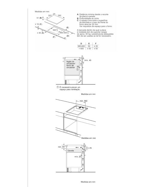 Medidas do nicho para instalação (AxLxP): 51 x 560-560 x 490-500 mm