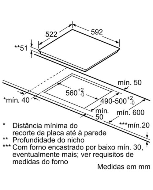 Medidas do nicho para instalação (AxLxP): 51 x 560-560 x 490-500 mm