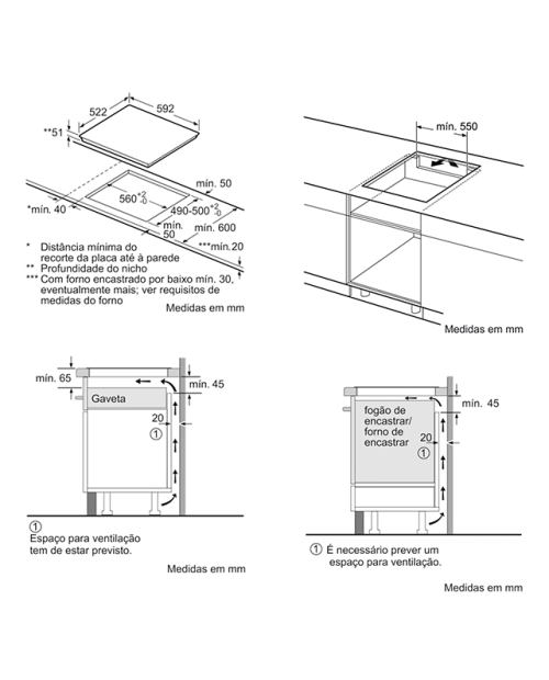 Medidas do nicho para instalação (AxLxP): 51 x 560-560 x 490-500 mm