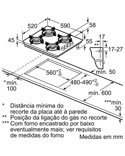Medidas do nicho para instalação (AxLxP): 45 x 560-562 x 480-492 mm
