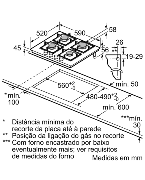 Medidas do nicho para instalação (AxLxP): 45 x 560-562 x 480-492 mm