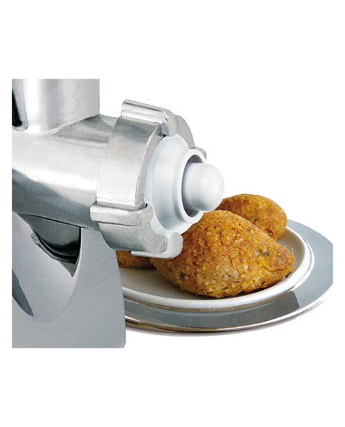 Lâminas para picar em 3 tamanhos, acessório kebbe e acessório ambutidor.