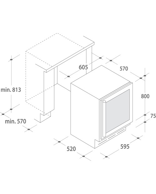 Dimensões necessárias para o encastre: 813x605x570 mm