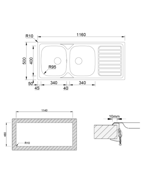 LAVA LOUÇA ENCASTRAR NÃO POLIDO RODI - OKIO LINE 116 FLAT - G06F6KO2P321A0
