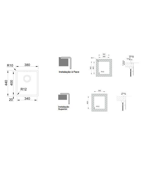 Medida das cubas: 340x400mm