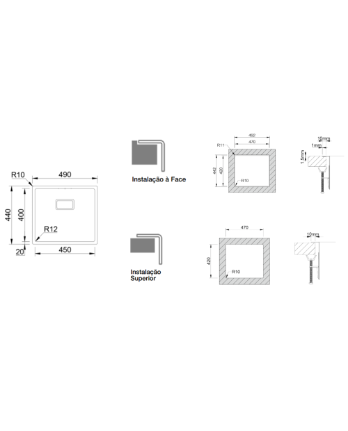Medida das cubas: 450x400mm