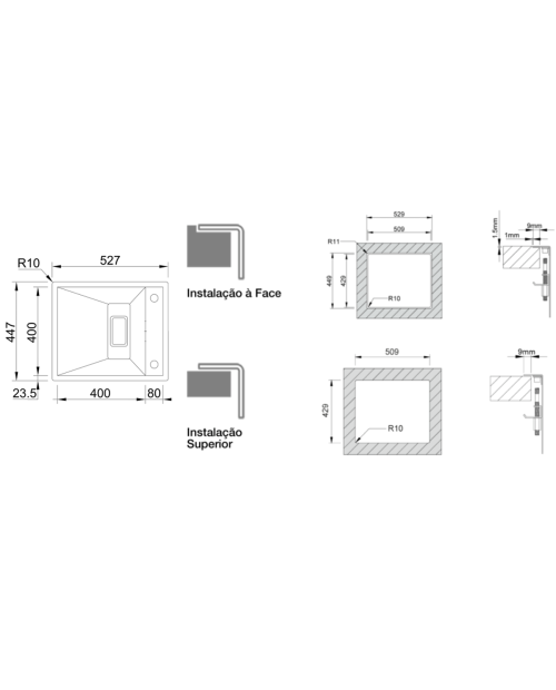 Medida das cubas: 400x400mm