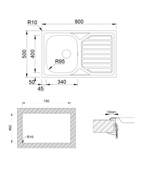 Medida externa: 800x500mm