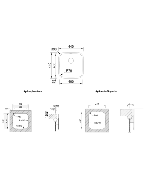 Medida das cubas: 400x400mm