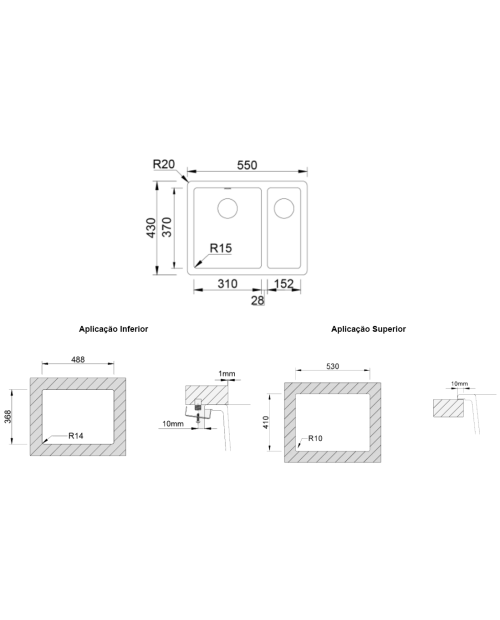 LAVA LOUÇA ENCASTRAR RODI - COMPOSITE DUO 60 NERO - XL050550409