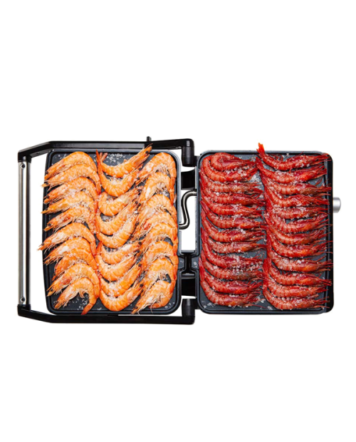 Grande superfície de cozedura com duas placas dobráveis a 180º.