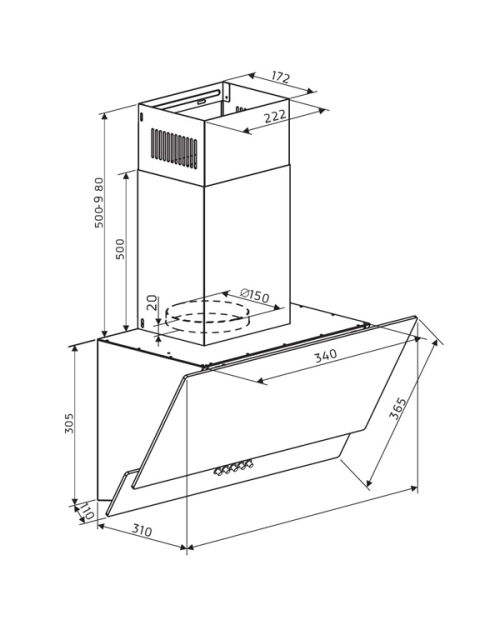 Chaminé ajustável (500 - 980mm)