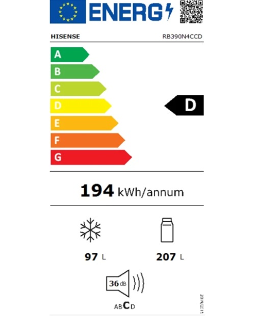 Consumo energético anual - NOVO (2010/30/CE): 194,0 kWh/a