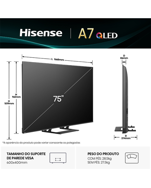 Etiquetas: HISENSE ELECTRÓNICA CONSUMO, HISENSE TV, ELECTRÓNICA CONSUMO TV, QLED HISENSE - 75A7Q, hisense, electrónica, consumo, 151, 75a7q, qled