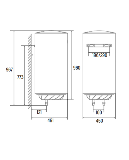 Termoacumulador elétrico com forma exterior redondo de 100 litros