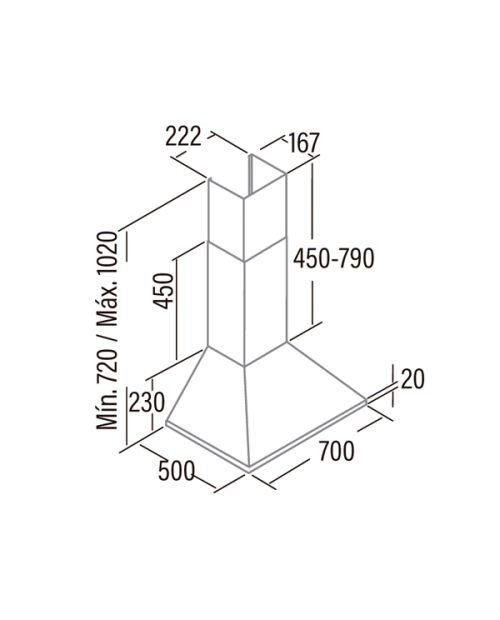 Dimensões (axlxp) 720-1020x700x500mm