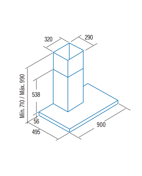 Dimensões (axlxp): (min. - máx) 710-990x900x495mm