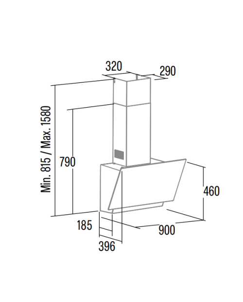 Dimensões (axlxp) 815-1580x900x396mm