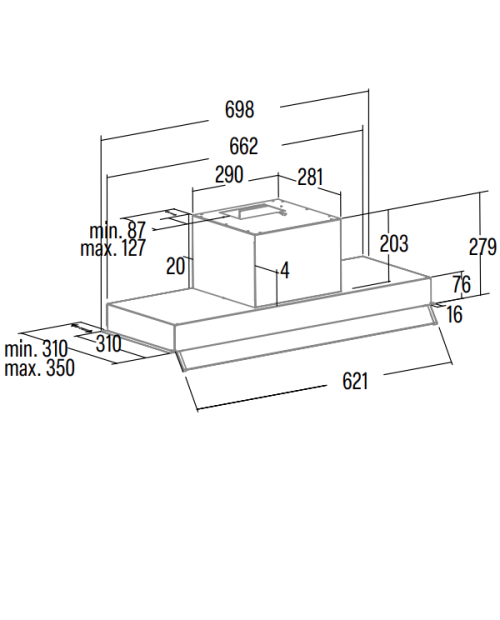 Dimensões (axlxp): 280x698x310-350mm