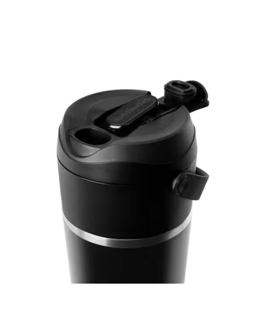 Copo de 590ml de capacidade, com isolamento térmico em aço inoxidável