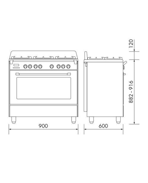 Dimensões (mm): 900x600xH882/916 (com rodapé H900)