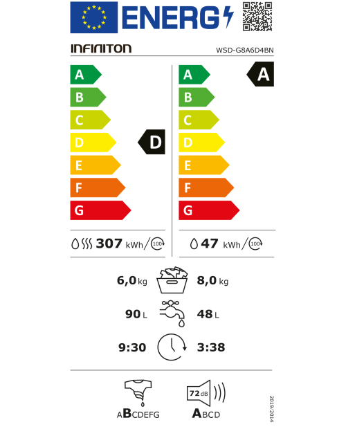 Consumo energético anual: 307 kWh/100ciclos