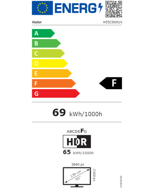 Classe de eficiência energética no modo High Dynamic Range (HDR): G