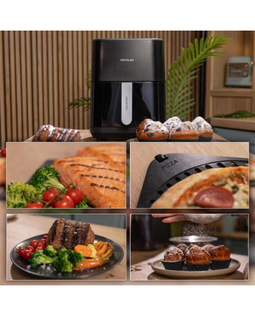 3 em 1: cozinhe tudo com a sua Cecofry graças ao seu design que incorpora uma fritadeira, um grelhador de carne e uma grelha para preparar pizzas com uma massa perfeita.